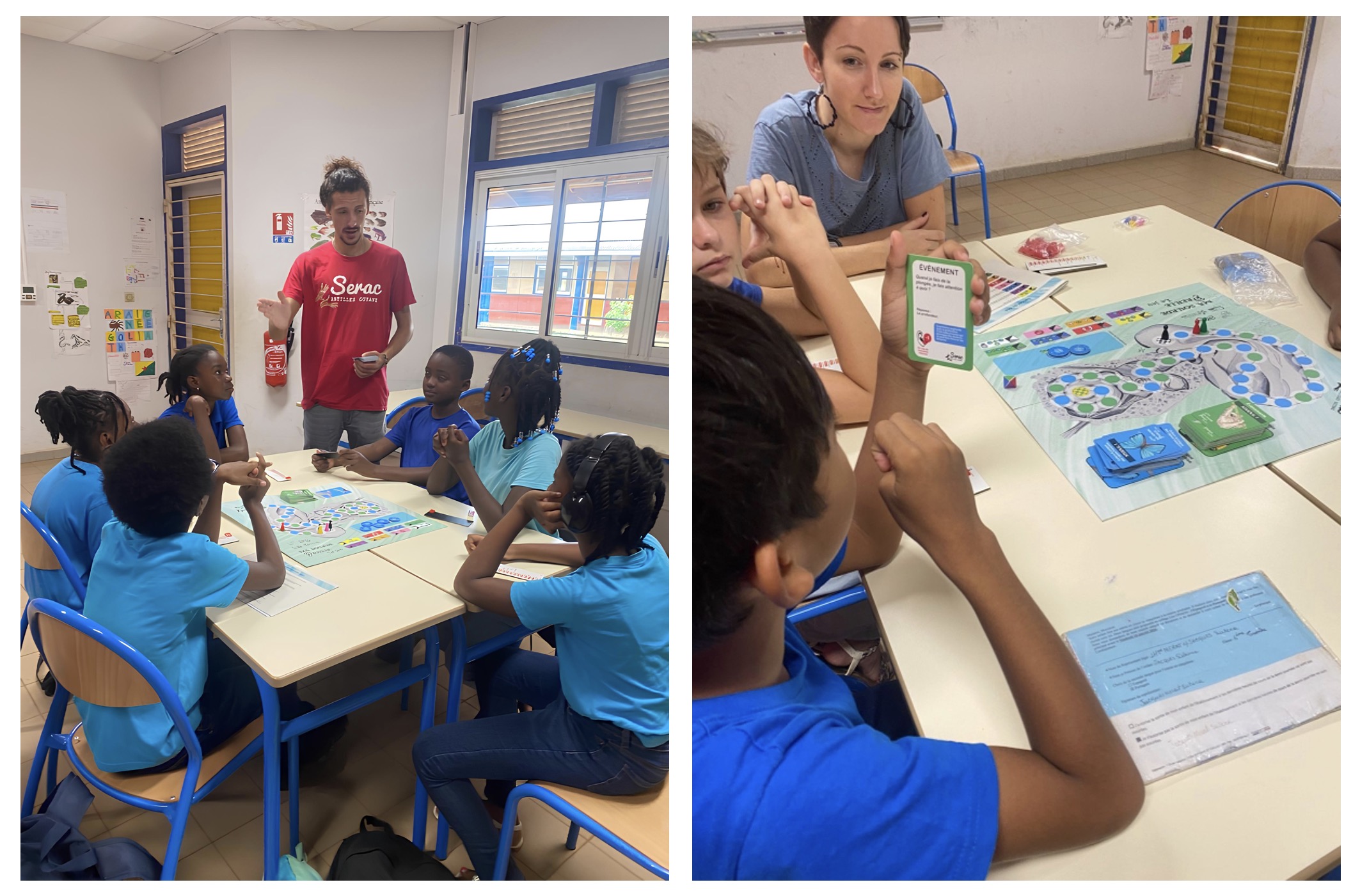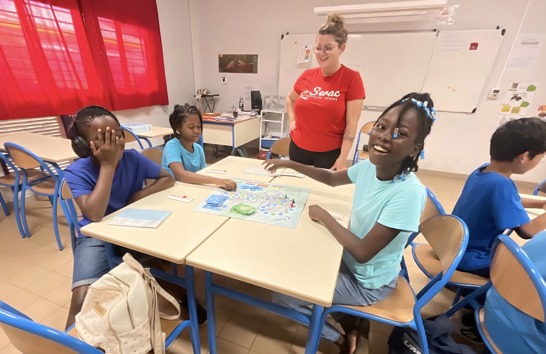 Lors d’une seconde intervention, les élèves ont pu mettre en pratique les acquis et apprendre les réflexes de protection au quotidien grâce au jeu de plateau du SERAC « Ma sourde oreille » :